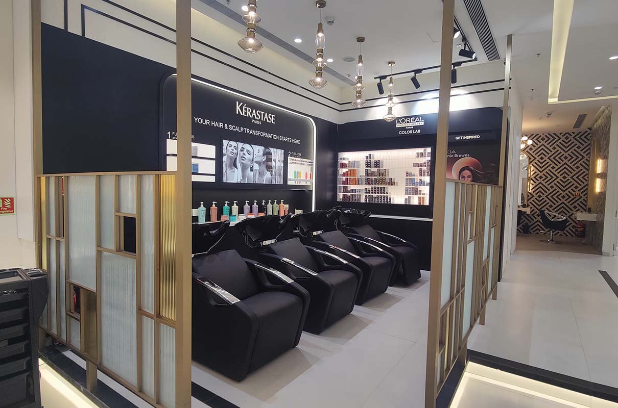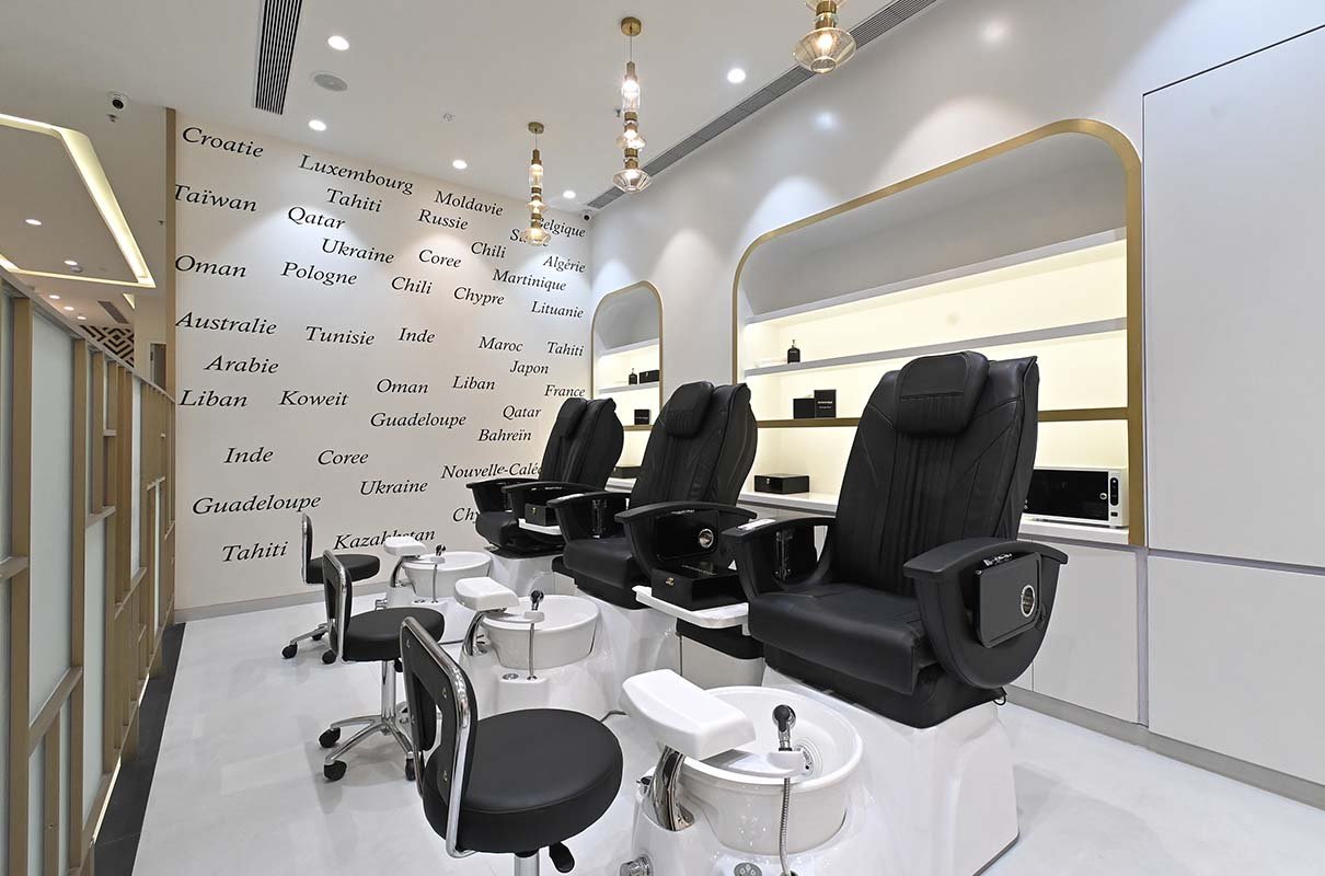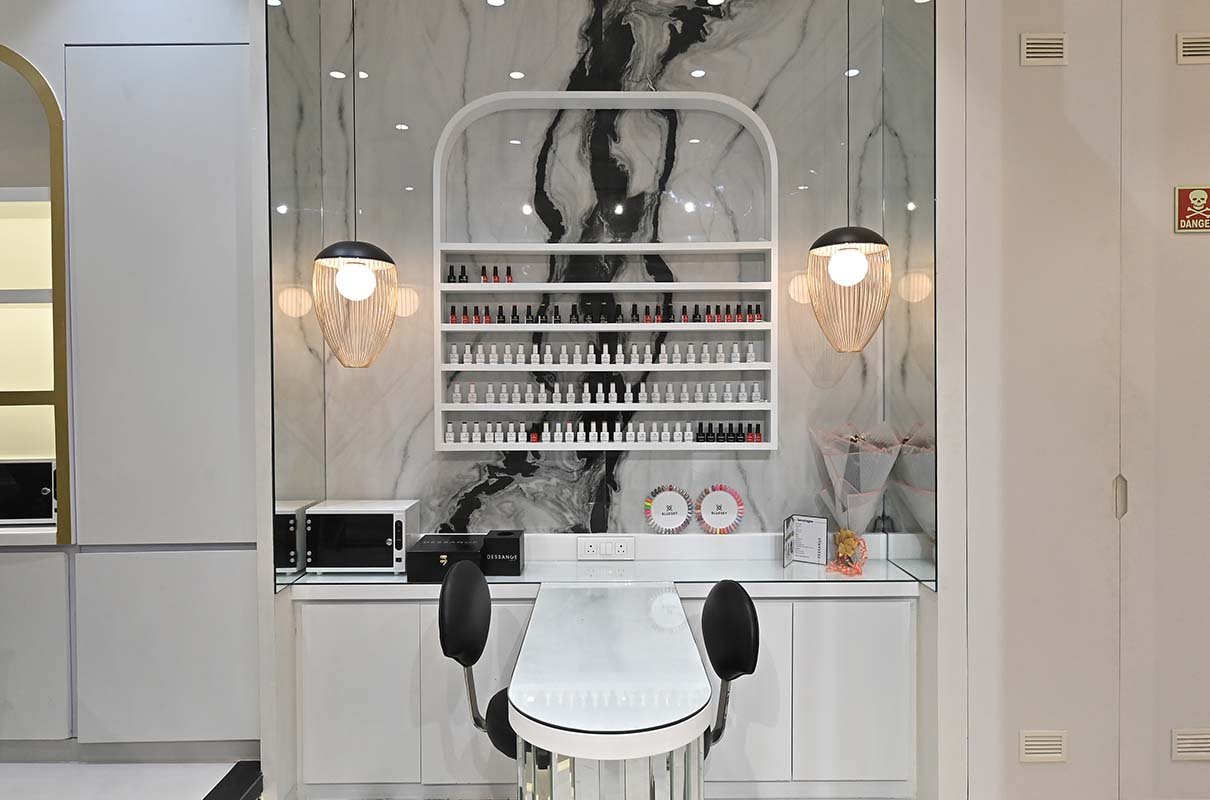 A luxury salon space inside Mumbai’s Palladium mall, designed with refined finishes and custom detailing. The interiors reflect French elegance paired with Indian craftsmanship, creating a sanctuary of beauty and sophistication. The space was tailored to make every client’s visit unforgettable.